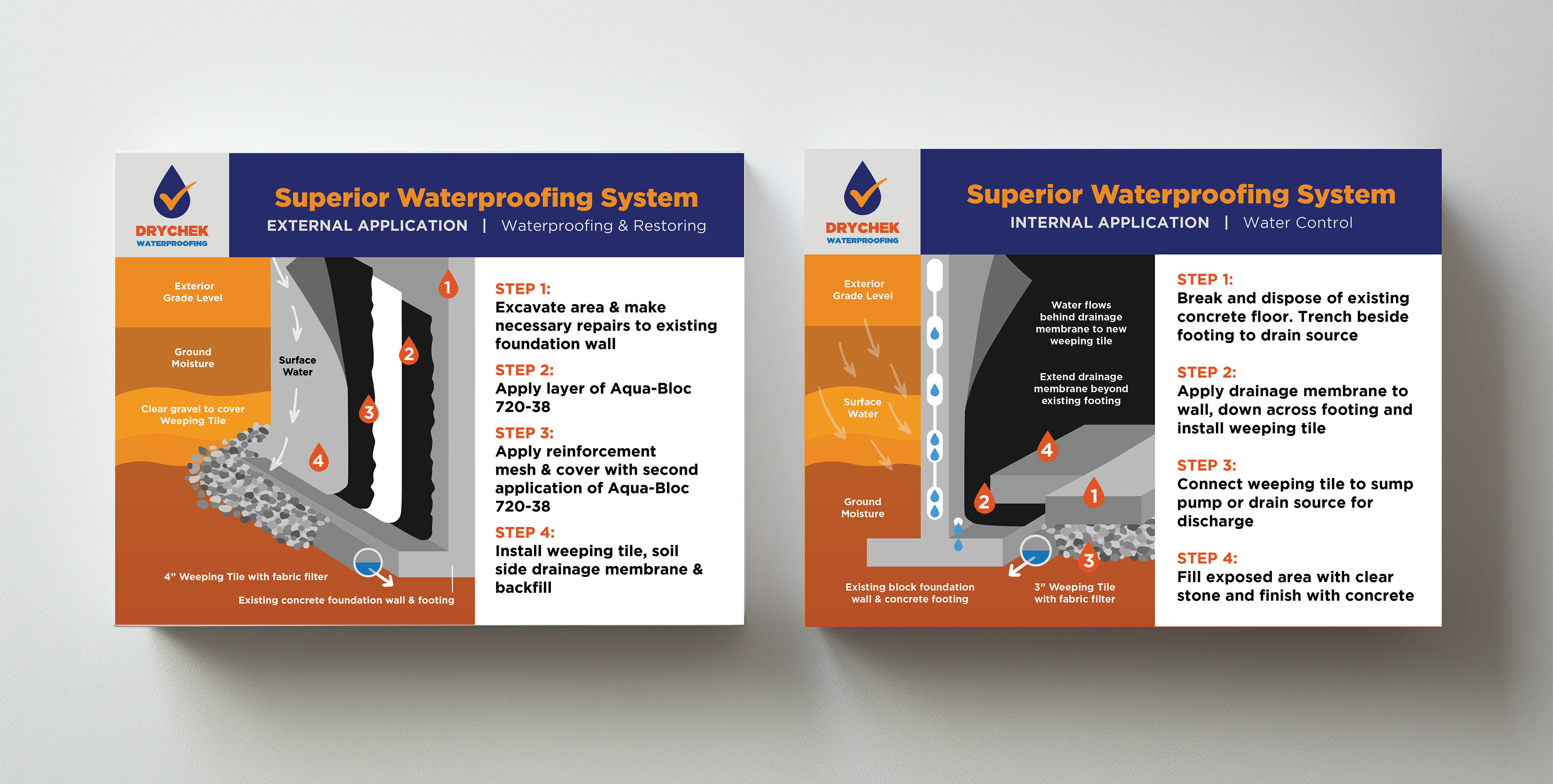 Drychek needed a brand identity that felt approachable, bold and simplistic. They wanted a logo that was easily recognizable, obvious and straight to the point. The combination of a checkmark, water droplet and chosen shades of orange and blue proved to efficiently represent the brand. Ultimately creating a play on opposites, wet & dry, warm & cool, and forming the needed contrasting colour palette for the company's other branded materials.